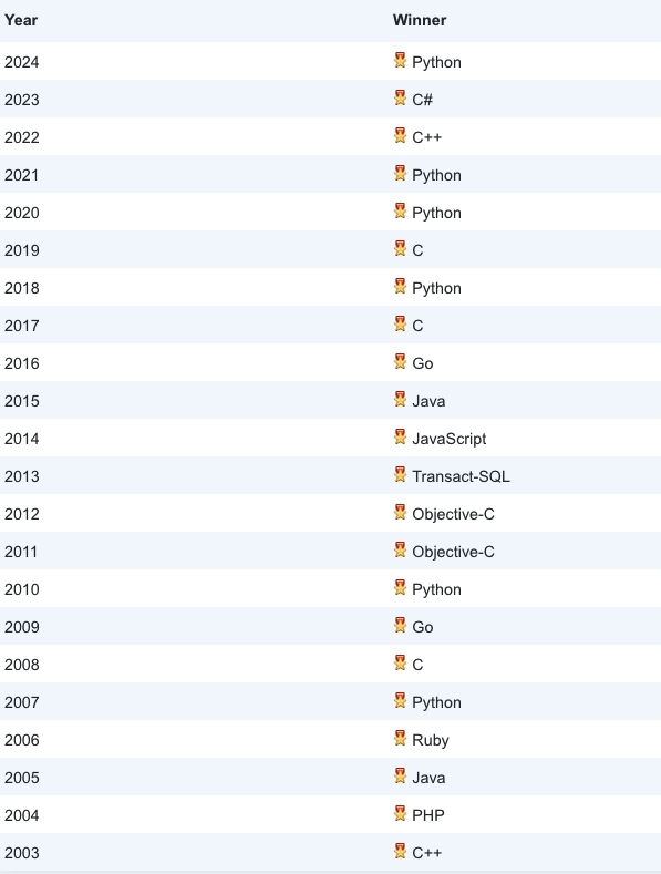 编程语言“名人榜”(2003-2024)