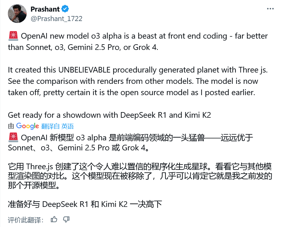 转载请注明:可思数据 » 最强前端编程渲染:OpenAI o3-alpha 曝光,力压 Sonnet、Grok4 等 AI 顶流模型