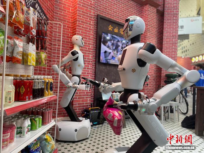 人形机器人有了大模型后,有什么帮助?在商品紧密、整齐排列的“小卖部”,北京银河通用机器人有限公司工作人员武文韬这么向中新社记者解释:以前没有大模型的时候,机器人更多是根据写好的程序,伸到固定的位置上去抓取物品,货架上商品一般不会堆叠得很紧密,不然机器人很难处理;现在,有了大模型,机器人有了自己的“大脑”,它要自己观察商品还有多远、何时抓取;经过反复训练后,这些动作最后都是由机器人自主去“决策”的。