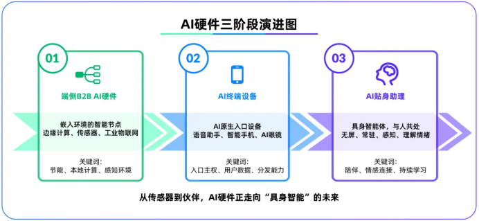 在端侧 AI 崛起前,AIoT的价值创造依赖 “云端算力 + 数据集中处理”,硬件不占据主导权,价值分配向云端倾斜。端侧AI的突破,让硬件成为智能生态的物理入口,成为智能体的物理载体,,首当其冲的AI硬件正成为连接算法与人、链接模型与生态的下一场决战前线,是各方争夺的核心。掌握硬件定义权,就能锁定细分场景下的高价值数据入口,硬件定义者成为价值迁移后的首要受益者。