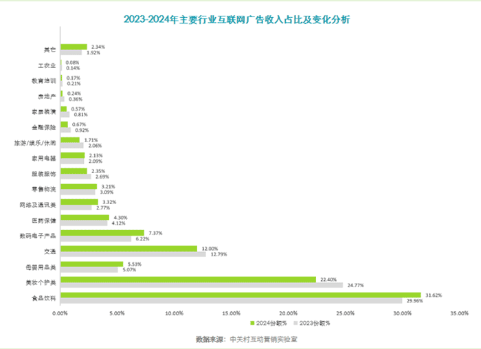 5. 2023—2024年主要行业互联网广告收入品类占比及变化分析