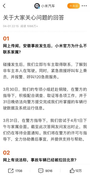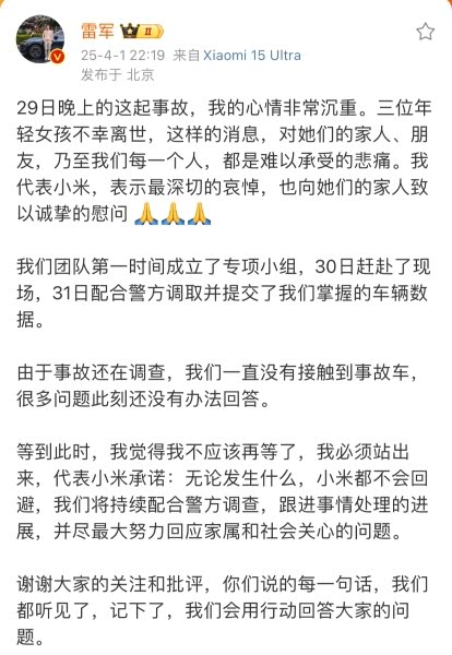 雷军正式回应,小米公开答疑。 事故值得我们深思!