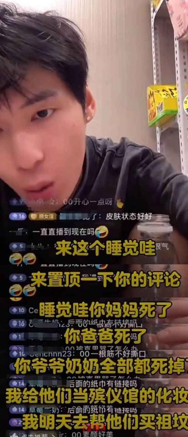 另一场直播中,他甚至辱骂素人网友:“你妈妈死了,你爸爸死了,你爷爷奶奶都死掉了,我给他们当殡仪馆的化妆师,我明天帮他们买祖坟。”