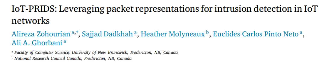 原文标题:IoT-PRIDS: Leveraging packet representations for intrusion detection in IoT networks
