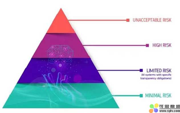 按照人工智能对用户和社会的潜在影响程度分为四级,分别为:不可接受风险类、高风险类、有限风险类、最小风险类。