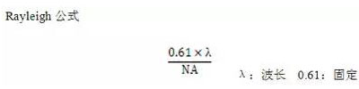 光学系能力的尺度,表示黑白格状图案通过镜头观察时,1mm 中可以分辨观察到黑白条纹的最多对数。分辨率为两点间在无法识别前,能靠近的最近距离测量值,例如 1μm 的分辨率代表两点间在无法识别前,能靠近的最近距离为 1μm。以下为根据镜头的无相差光衍射情况计算理论分辨率的公式。