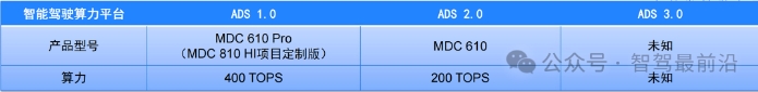 ADS 1.0阶段,华为采用了自研的MDC 610 Pro计算平台,支持400 TOPS的算力,以满足L3级别及更高阶的自动驾驶需求。然而,实际应用中,这种超高的算力配置并未被充分利用,特别是在L2+级别的自动驾驶场景中,算力冗余带来了不必要的功耗和成本增加。