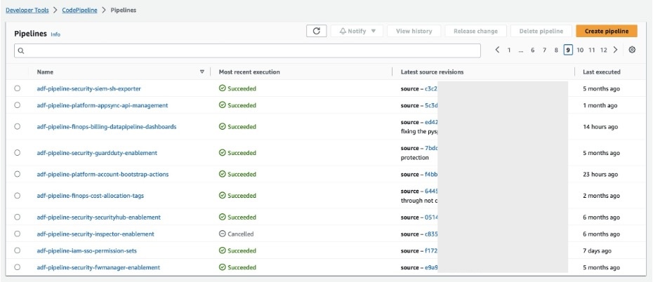 下面的屏幕截图显示了应用程序部署管道的一个子集,下一代 ADAS 平台上总共有 120 个由 ADF 自动生成的部署管道。