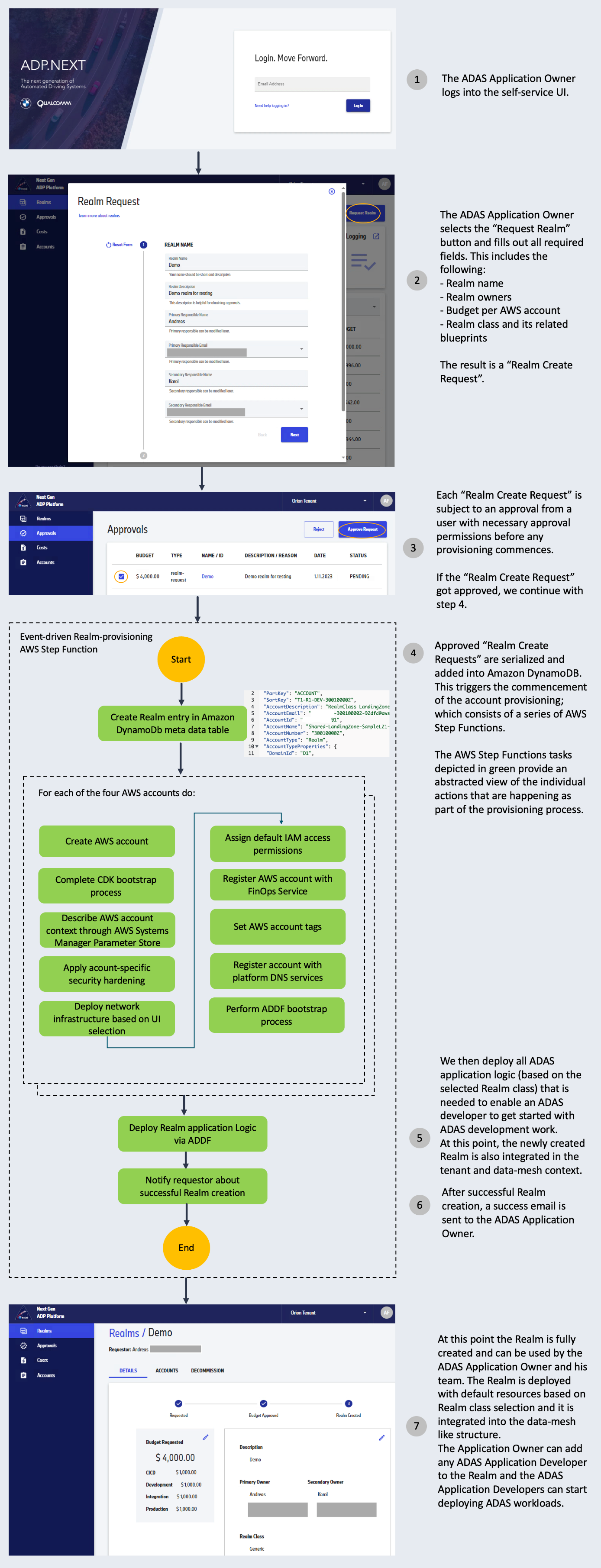 图 3. 在平台的自助服务 UI 上端到端创建 Realm 的工作流程