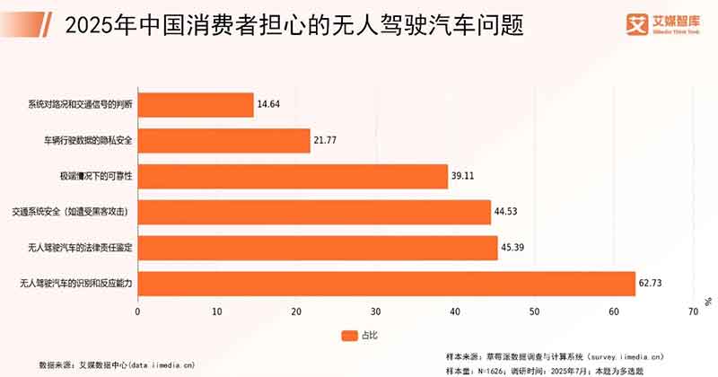 2025年中国消费者对无人驾驶汽车隐私方面担忧
