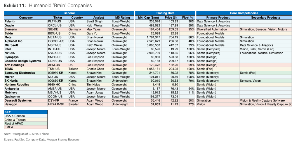 转载请注明:可思数据 » 中国主导身体,英伟达要做大脑,特斯拉“做整合”——大摩详解人形机器人100强公司!
