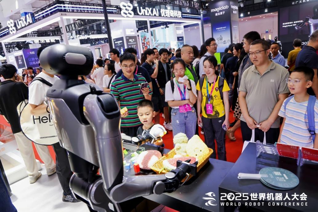 抓取、铺平、折叠,两只机械臂动作“丝滑”地将一件件T恤整齐堆叠。取货、转身、递交,一台人形机器人“售货员”将一大包泡面递到消费者手中;弹琴、敲鼓、拨弦,一支机器人“乐队”复刻人类手法弹奏《青花瓷》……这是“机器人家族”们在2025世界机器人大会上令人惊艳的一幕幕。如果站在2008年的时间刻度眺望,大会上的盛景几乎与当年科幻动画片《机器人总动员》中畅想的未来“重叠”:在飞船里,人类不需要动手做家务,端茶送水的机器人是忠实的服务员。17年后,当科幻照进现实,琳琅满目的机器人启迪我们更多思考:越来越“类人”机器人何时从展演走向应用,成为工厂车间里的最强“打工人”、千家万户的智能“生活搭子”?
